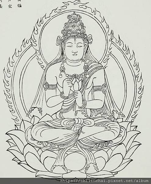 圖片為觀世音菩薩,出自《大正新脩大藏經》圖像部第1巻 [P.1003:金剛界九會大曼荼羅 仁和寺版]