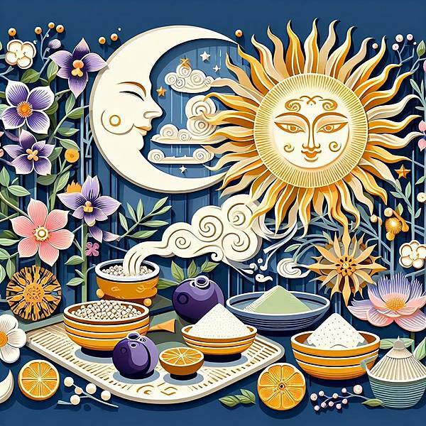 例如香的製作,不論是新研磨、結合的香粉,或是剛乾燥的卧香,需要窖藏、退黏,讓多種氣味能夠合而為一。一即是全,全即是一。日與月,日以繼夜,天道運行。如易經乾卦:天行健,君子以自強不息;太陽的光輝,月亮的陰柔,各有特色,成就萬事萬物。