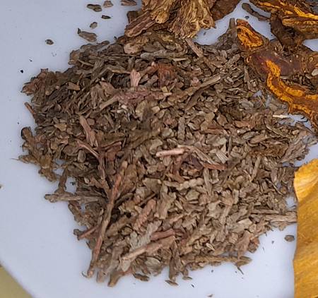 據考證,青木香應為木香,依產地而有雲木香、川木香,廣木香等。藥書中記載的青木香是馬兜鈴根,不是正品。青木香所指的是顏色較美、品質較好的木香。木香有種濃厚的氣味,用來行氣止痛。